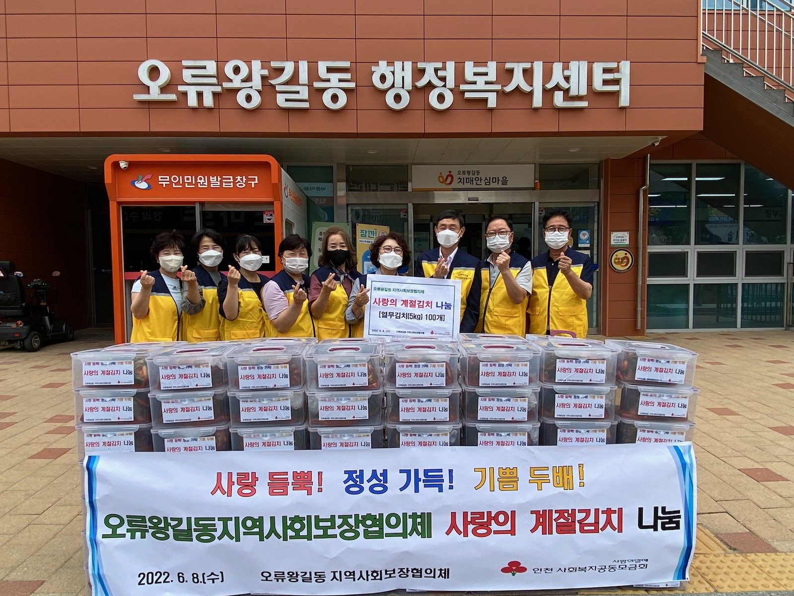 오류왕길동지역사회보장협의체는 매년 저소득층의 영양보충 및 부식마련에 대한 경제적 부담 완화를 위해 사랑의 계절김치 나눔 사업을 추진하고 있다.
