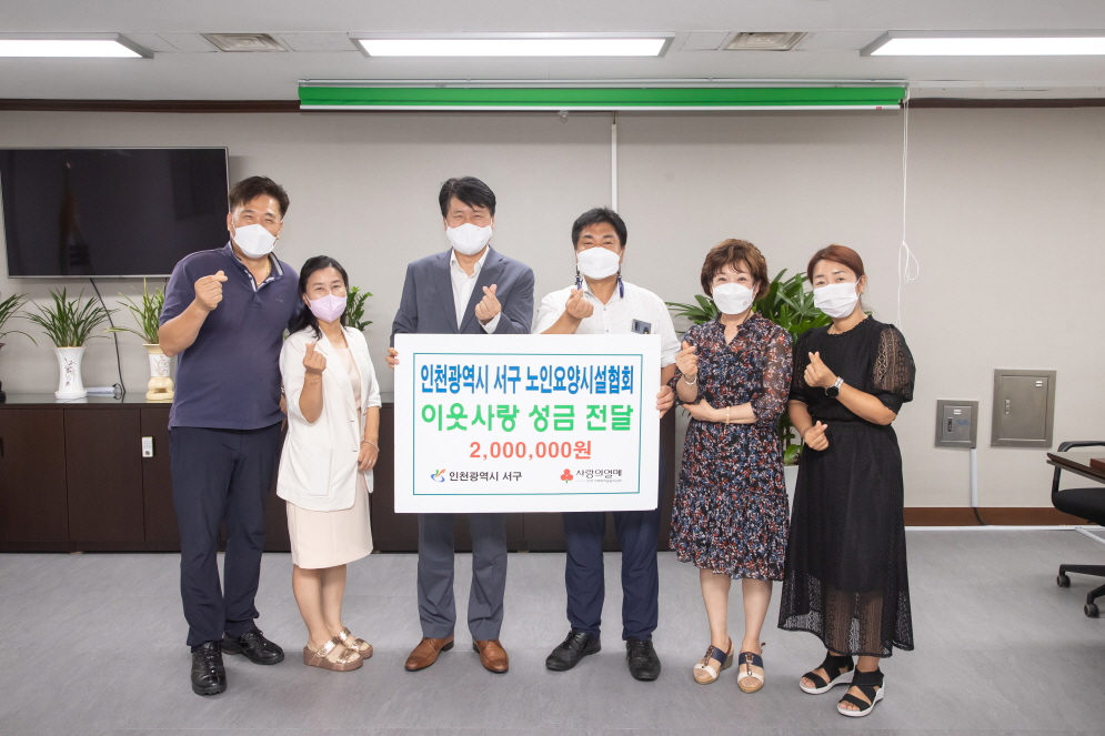 인천 서구(구청장 강범석)는 19일 서구 노인요양시설협회(협회장 조진흠)가 이웃돕기 성금 200만 원을 전달했다고 밝혔다.