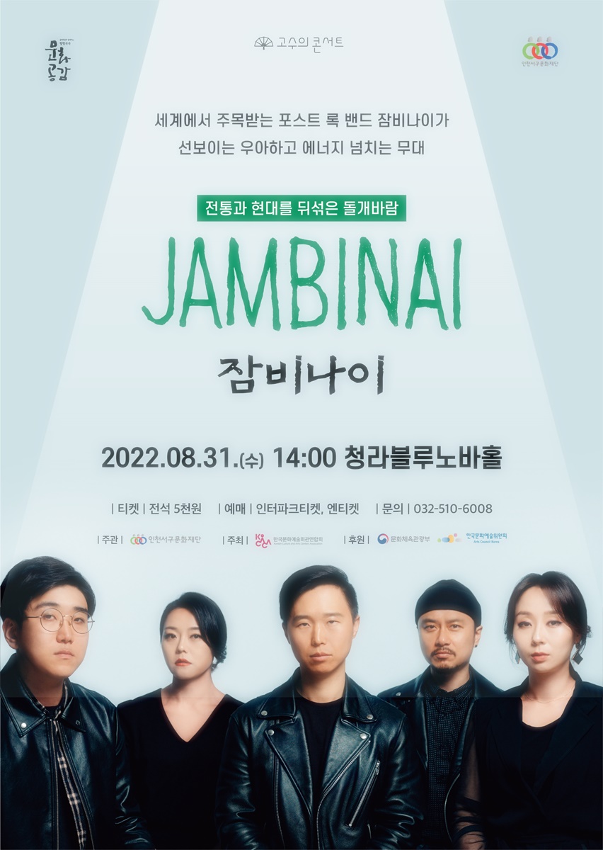 이번 무대는 지난 2018년 평창동계올림픽 폐막식 연주곡인 ‘소멸의 시간’을 비롯해 2016년 미국국영방송 NPR이 선정한 올해의 노래 100곡에 뽑인 ‘그들은 말이 없다’, 2020년 한국대중음악상 최우수 록 노래 부문을 수상한 ‘온다’등을 선보인다. 이번 공연은 한국 전통음악과 현대 대중음악의 매력적 요소를 엮어낸 ‘잠비나이’의 우아하고 에너지 넘치는 무대를 감상할 수 있다.