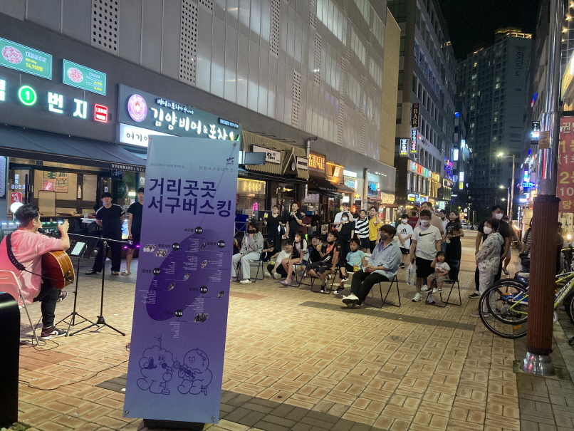 이번 버스킹은 ▲18일 루원시티 음식문화거리 ▲19일 서구청 마실거리 ▲20일 검암역 광장 ▲21일 완정역(당하5호어린이공원) ▲22일 아라뱃길 시천교 하부 공연장에서 저녁 7시부터 9시까지 진행됐다.
