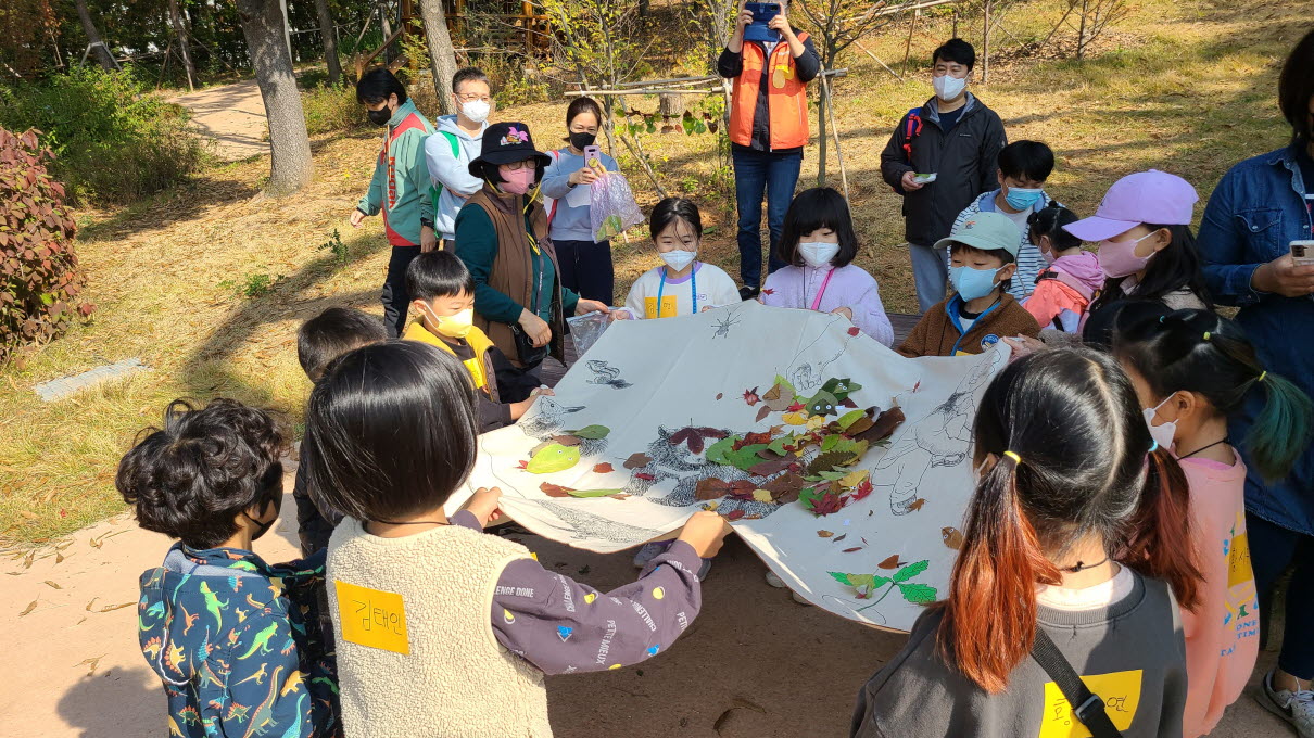 참여 아동과 가족들은 단풍나무 잎과 상수리 열매를 이용한 만들기 등 다양한 놀이 활동을 즐긴 데 이어 마지막 프로그램으로 천연이끼인 스칸디아모스로 ‘공기정화 나무 액자’를 함께 만드는 시간을 가졌다.