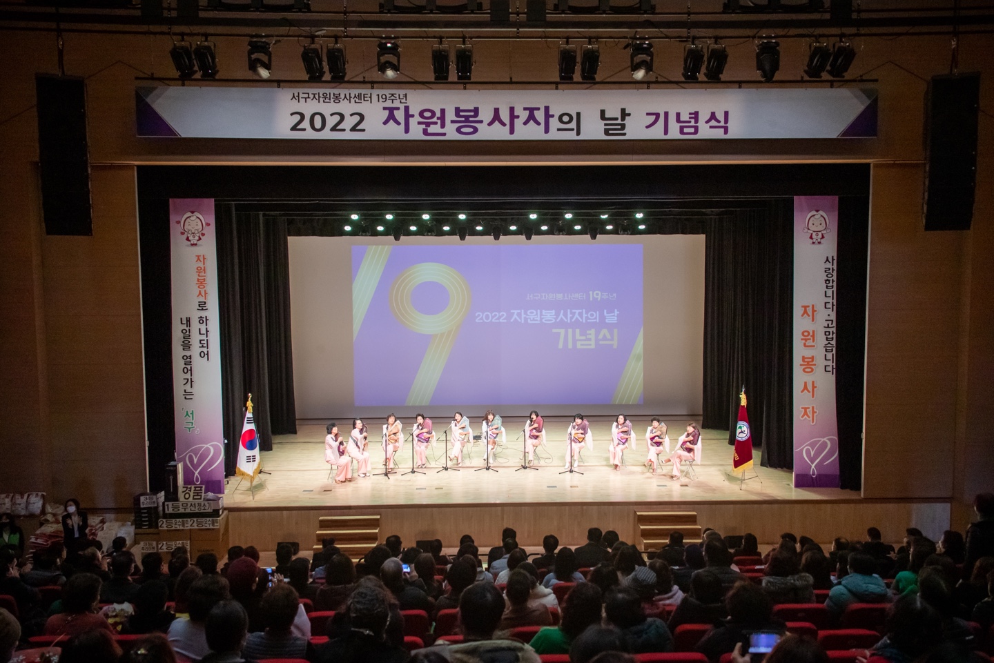 이번 기념식에서는 우수 자원봉사자 32명에 대해 행정안전부장관상, 인천광역시장상, 서구청장상 등 표창이 수여됐다. 또한 자원봉사시간 2천시간부터 5천시간 이상에 해당하는 자원봉사자 86명에게는 봉사왕, 금장, 은장, 동장 등 인증패와 인증서가 수여되기도 했다.