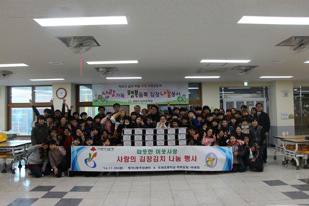 인천광역시 서구 도담초등학교(교장 김기상)는 관내 어려운 이웃에 전달해 달라며 ‘사랑의 김장김치’ 5kg, 50통을 청라2동주민센터에 기탁하였다.