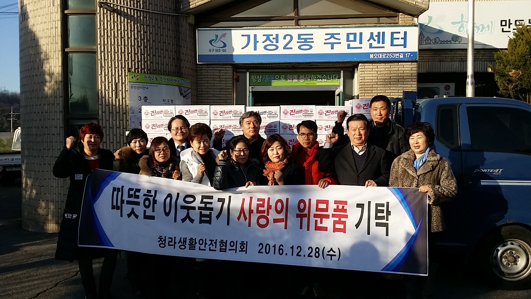 청라생활안전협의회 박현복 위원장은 “작은 정성이지만 추운 겨울 보내시는데 조금이나마 보탬이 되었으면 좋겠다.”고 소감을 전했다.