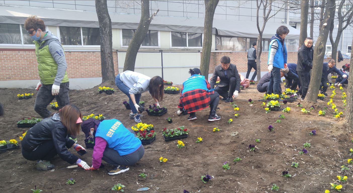 이날 행사는 통장자율회, 자생단체, 직원 등 50여명이 참석해 무단 투기된 쓰레기를 청소하고 자투리땅에 팬지를 식재해 주민들에게 봄 분위기를 전달했다.