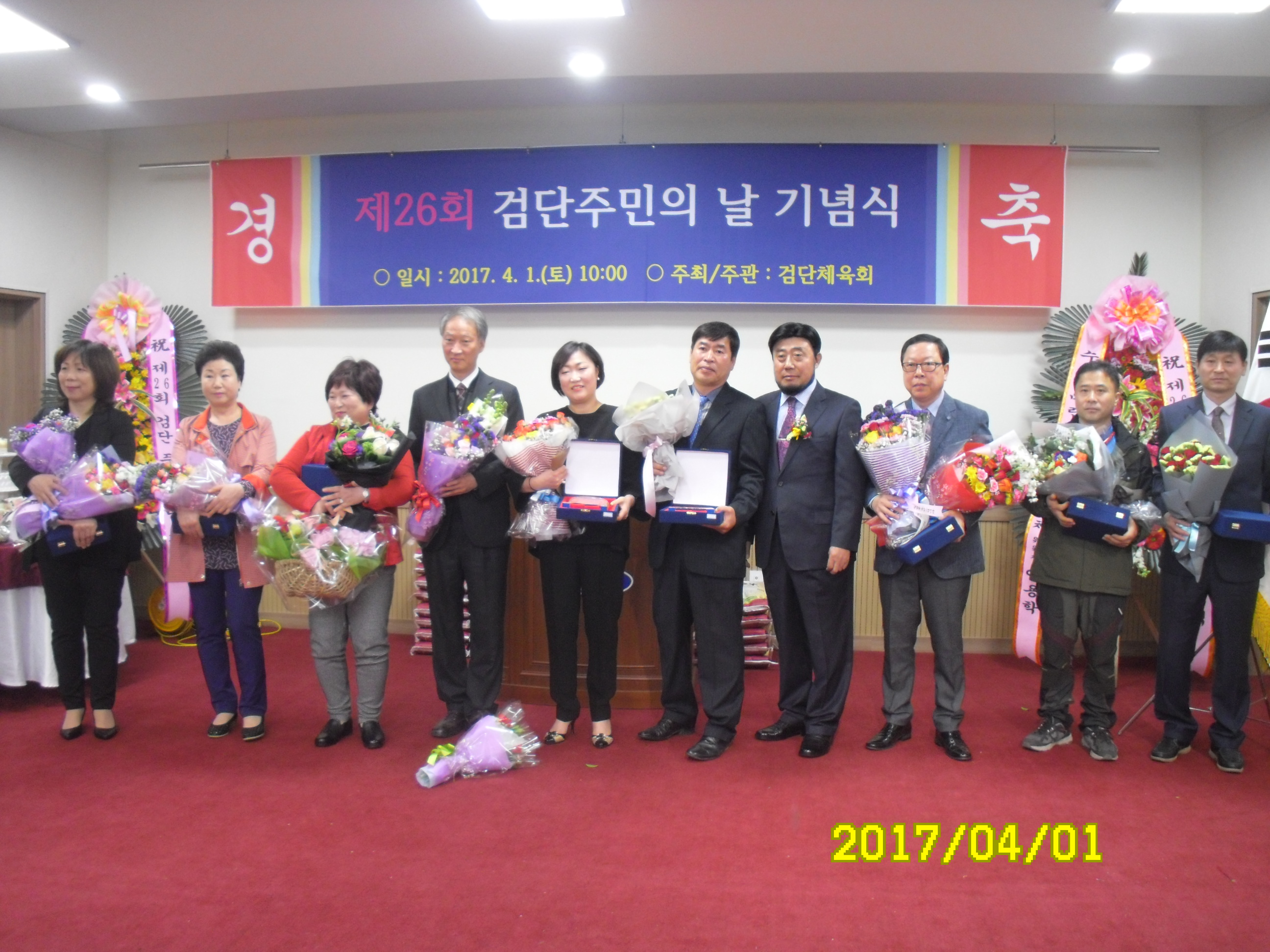 인천 서구 검단체육회(회장 이상규, 수석부회장 이순현)는 지난 1일 검단1동 행정복지센터 대강당에서 검단주민 200여명이 참석한 가운데 『제26회 검단주민의 날 기념식』을 개최했다.