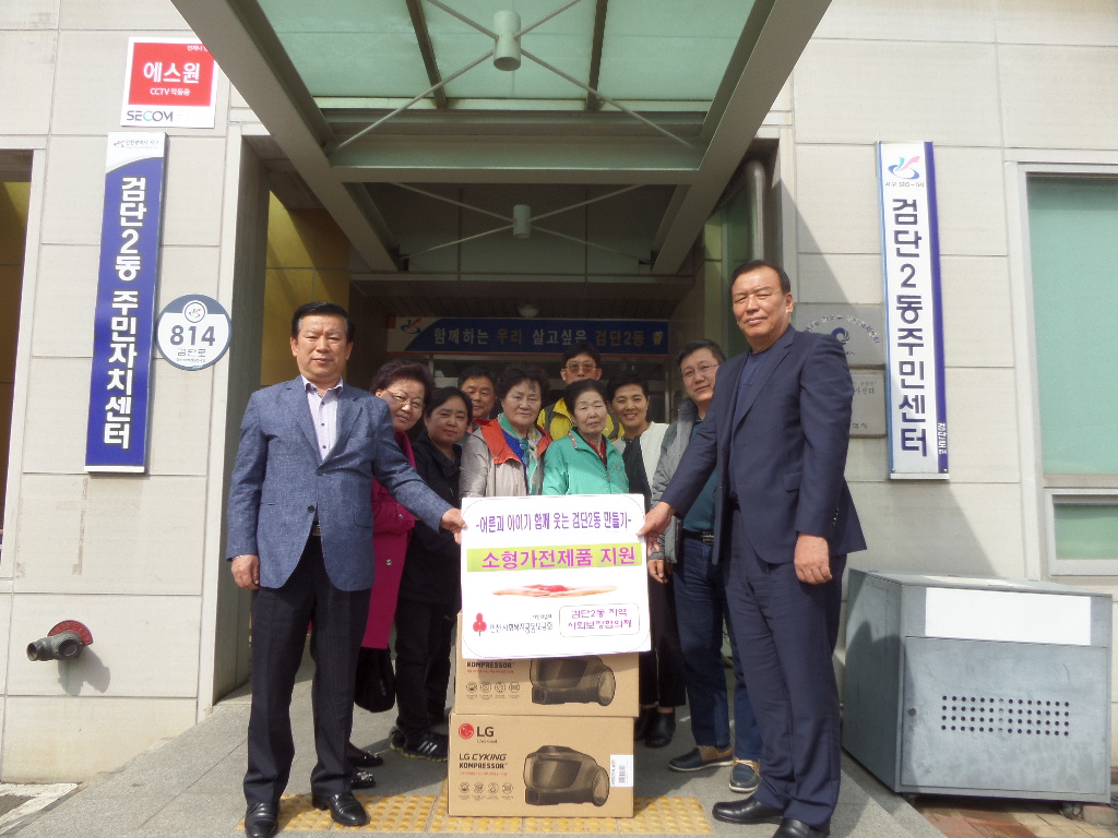 이번 사업은 ‘어른과 아이가 함께 웃는 검단2동 만들기’ 사업의 일환으로 진행됐으며, 독거노인 및 복지사각지대 취약계층 5세대를 대상으로 노후 됐거나 생활이 어려워 마련하지 못한 가스레인지, 전기밥통, 청소기 등 소형가전제품을 지원했다.