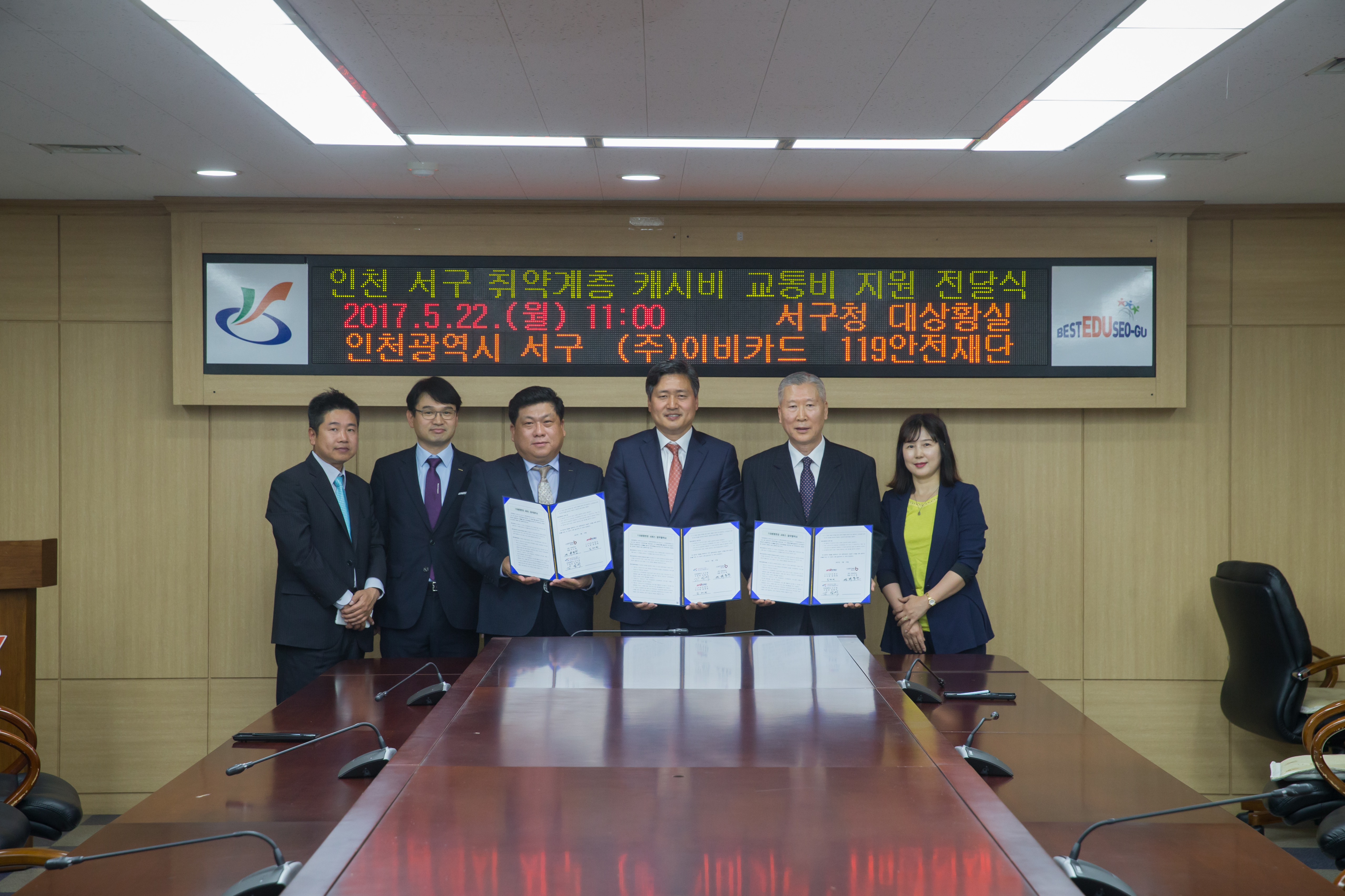 인천광역시 서구(구청장 강범석)는 지난 5월 22일 관계기관 대표들이 한자리에 모여『인천서구 취약계층 캐시비 교통비지원』업무협약식을 가졌다.