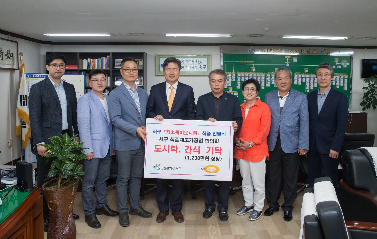 인천 서구(구청장 강범석)는 지난달 31일 서구 식품제조․가공업협의회에서 도시락, 김치, 간식류 등 1,200만원 상당의 성품을 서구청에 전달했다고 밝혔다.