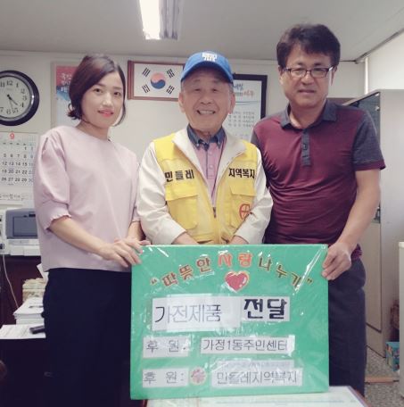 민들레지역복지(신부 이효민)는 지난 25일 가정1동을 방문해 일정하게 거주하는 곳 없이 찜질방등을 전전하며 지내오던 저소득 가구를 위한 가전제품을 전달했다.