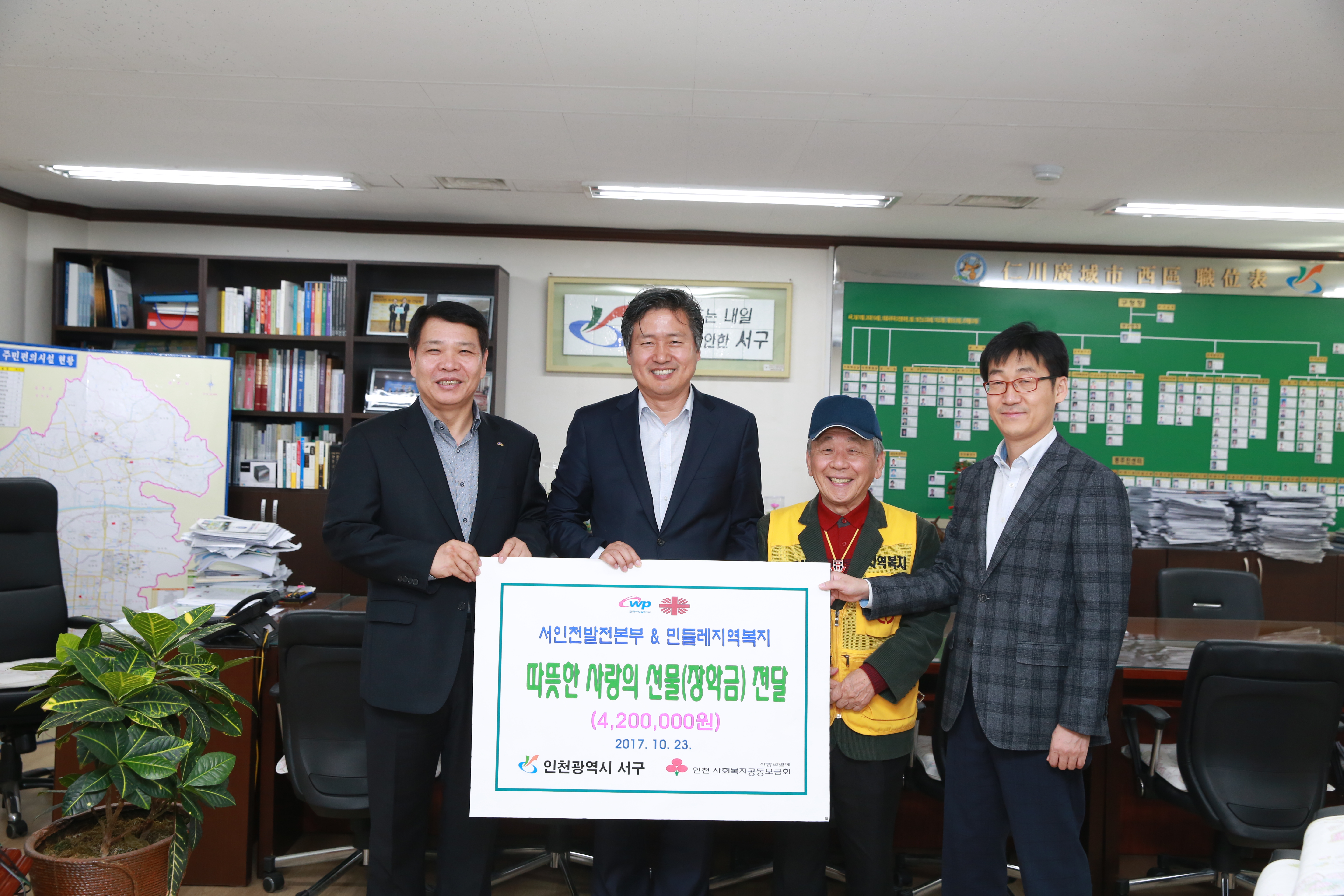 이번 장학금은 ‘한국서부발전(주) 서인천발전본부(본부장 권유환)’의 후원으로 관내 한부모 및 조손가정의 어려운 청소년들에게 장학금(1인당 20만원)으로 지급될 예정이다.