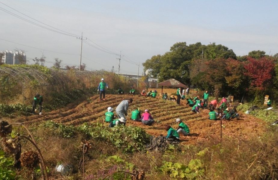 구는 올해 시천동 국유지 3,555㎡를 도시농업농장으로 조성해 공익 목적으로 운영을 희망하는 3개 단체를 선정해 농장을 분양했으며, 서구 새마을협의회 및 농업인단체는 이를 분양받아 지난 5월 고구마를 심었다.