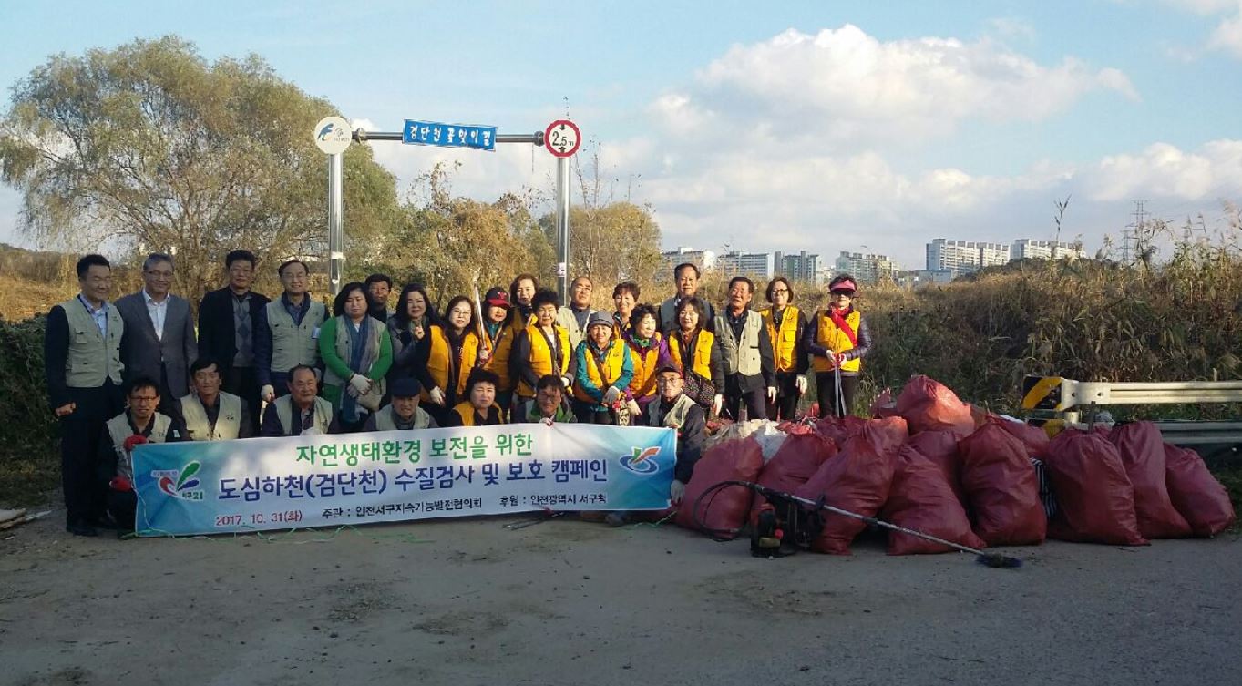 인천시 서구 지속가능발전협의회(상임대표 강범석)는 지난달 31일 2시간동안 오류동 검단천 상류 일원에서 2017년도 실천사업인 ‘도심하천 수질검사 및 자연보호 활동’을 전개했다.