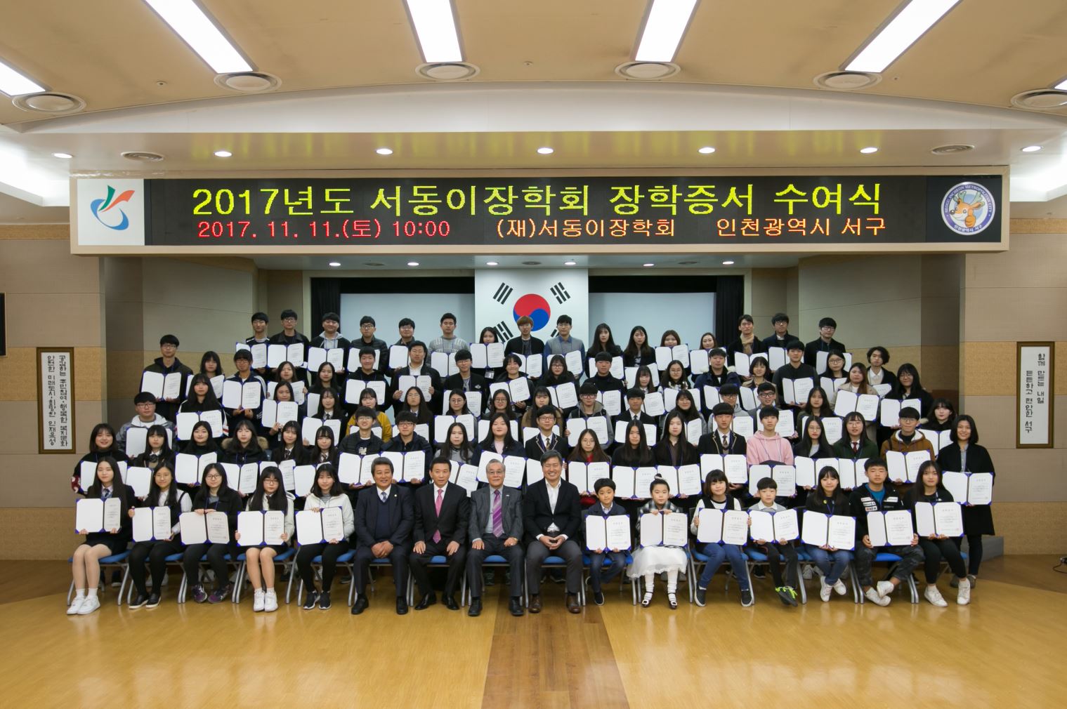 재단법인 서동이장학회(이사장 강범석)는 지난 11일 서구청 대회의실에서 2017년도 서동이장학생에 대한 장학증서 수여식을 가졌다.