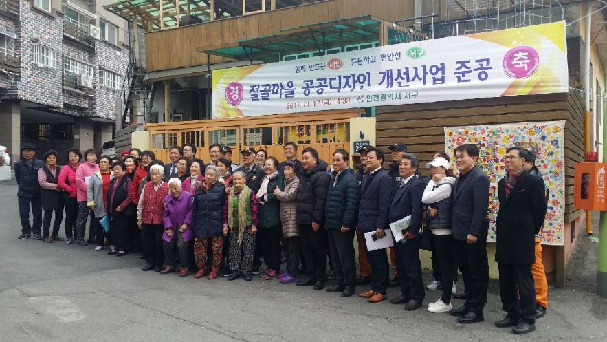 인천시 서구(구청장 강범석)는 지난 17일에 석남동 111-1번지 일원 절골마을의 마을환경을 개선하고자 인천시에서 추진한 「원도심 디자인 활성화 사업」에 따른 「절골마을 공공디자인 개선사업」 준공식을 개최했다.