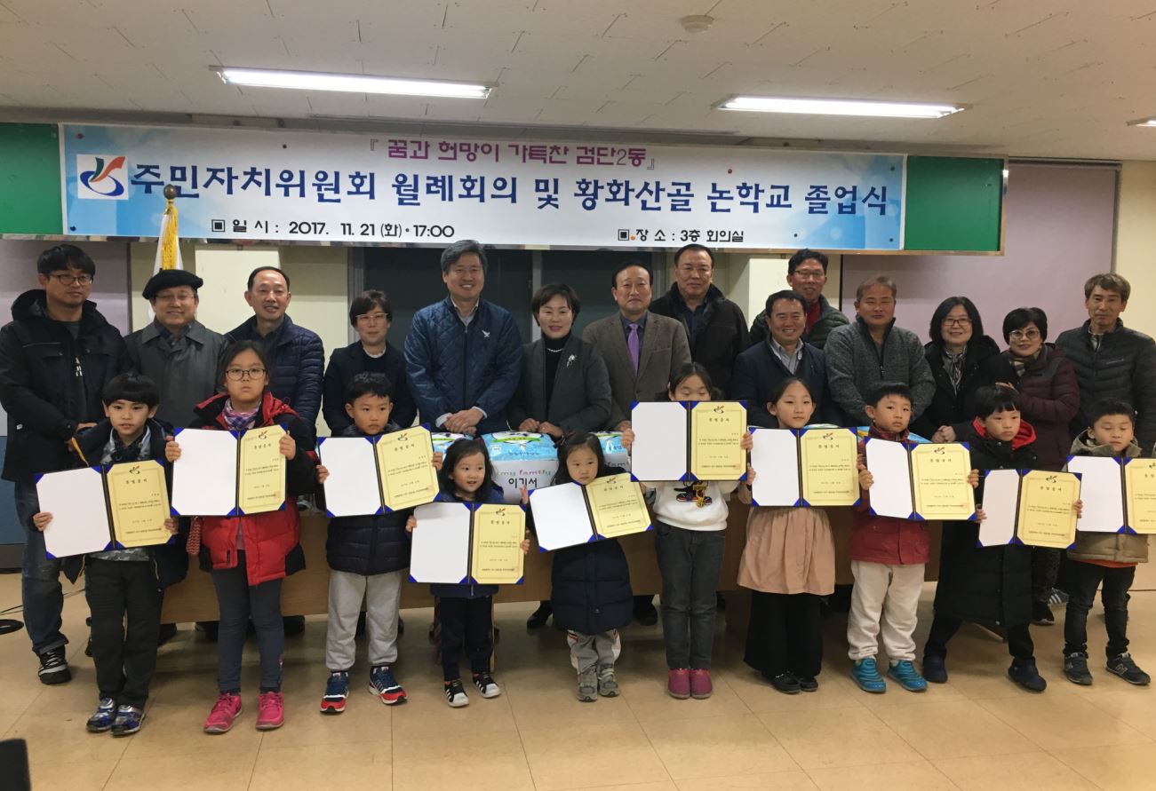 인천시 서구 검단2동 주민자치위원회(위원장 양혜경)는 지난 21일 주민센터 회의실에서 ‘제1기 황화산골 논학교 체험단 졸업식’을 개최했다.