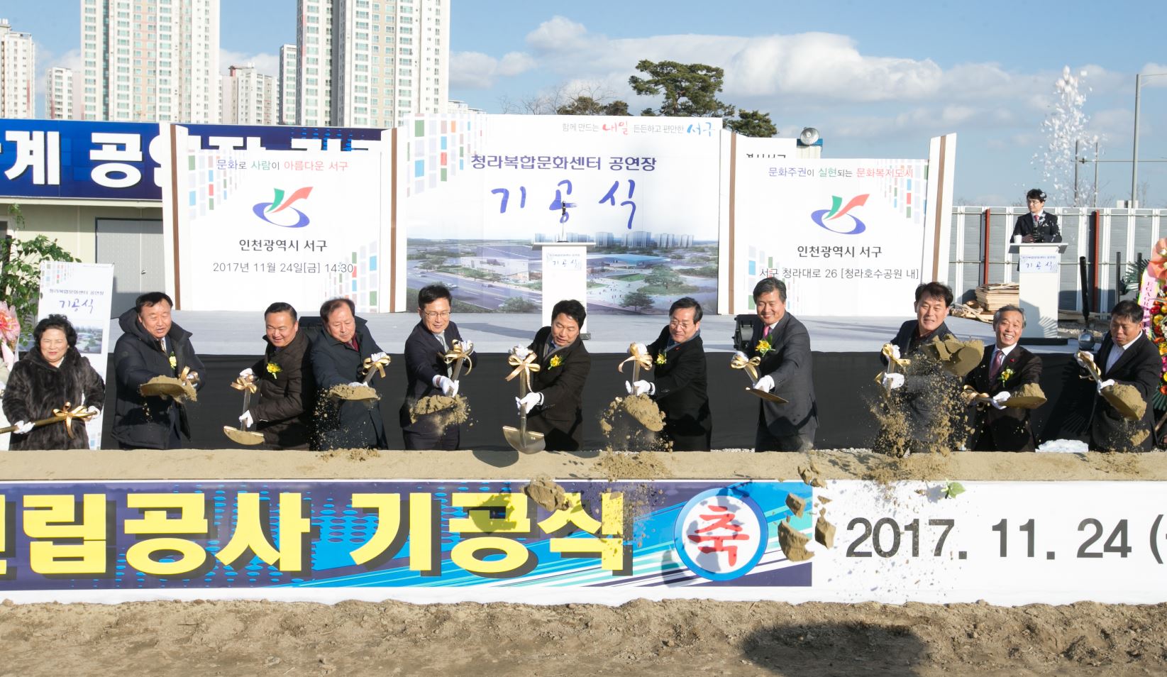 이번 기공식에서 강범석 서구청장은 “오늘의 공연장 착공이 가능할 수 있도록 도와주신 관계자 여러분께 깊은 감사를 드리며, 청라복합문화센터가 끝이 아닌 시작으로 문화를 꽃피우는 서구를 만들어 나갈 것”이라고 말했다.