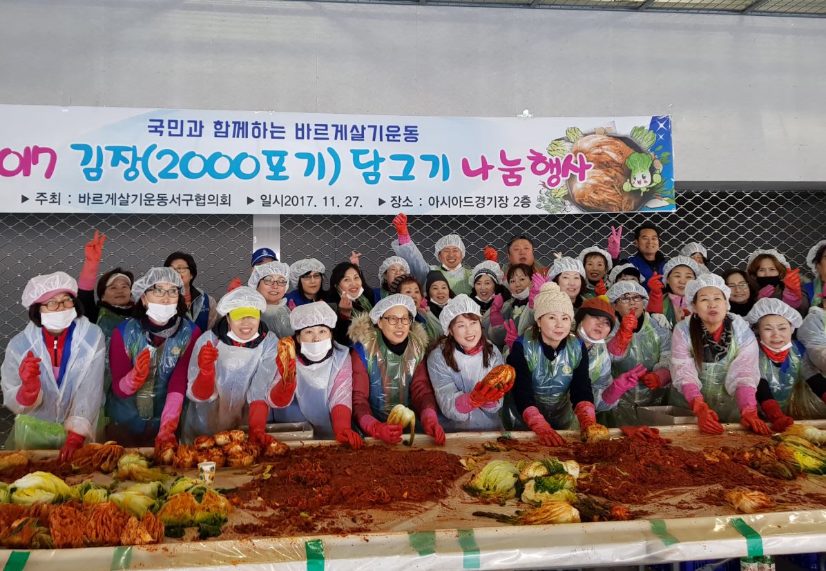 바르게살기운동 인천서구협의회(회장 김도철)는 지난 27일 인천 아시아드 주경기장에서 ‘2017 김장 담그기 나눔 행사’를 가졌다.
