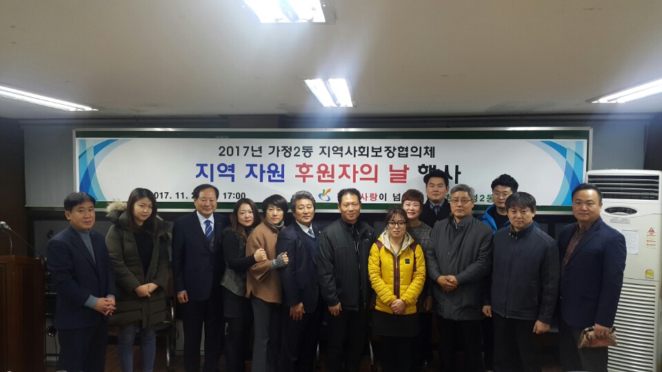인천시 서구 가정2동 지역사회보장협의체는 관내 복지소외계층에 대한 발굴과 지원 활성화를 위해 애써주신 협력 기관들 및 개인 후원자를 모시고 지역자원 후원자의 날 행사를 지난 27일 개최했다.