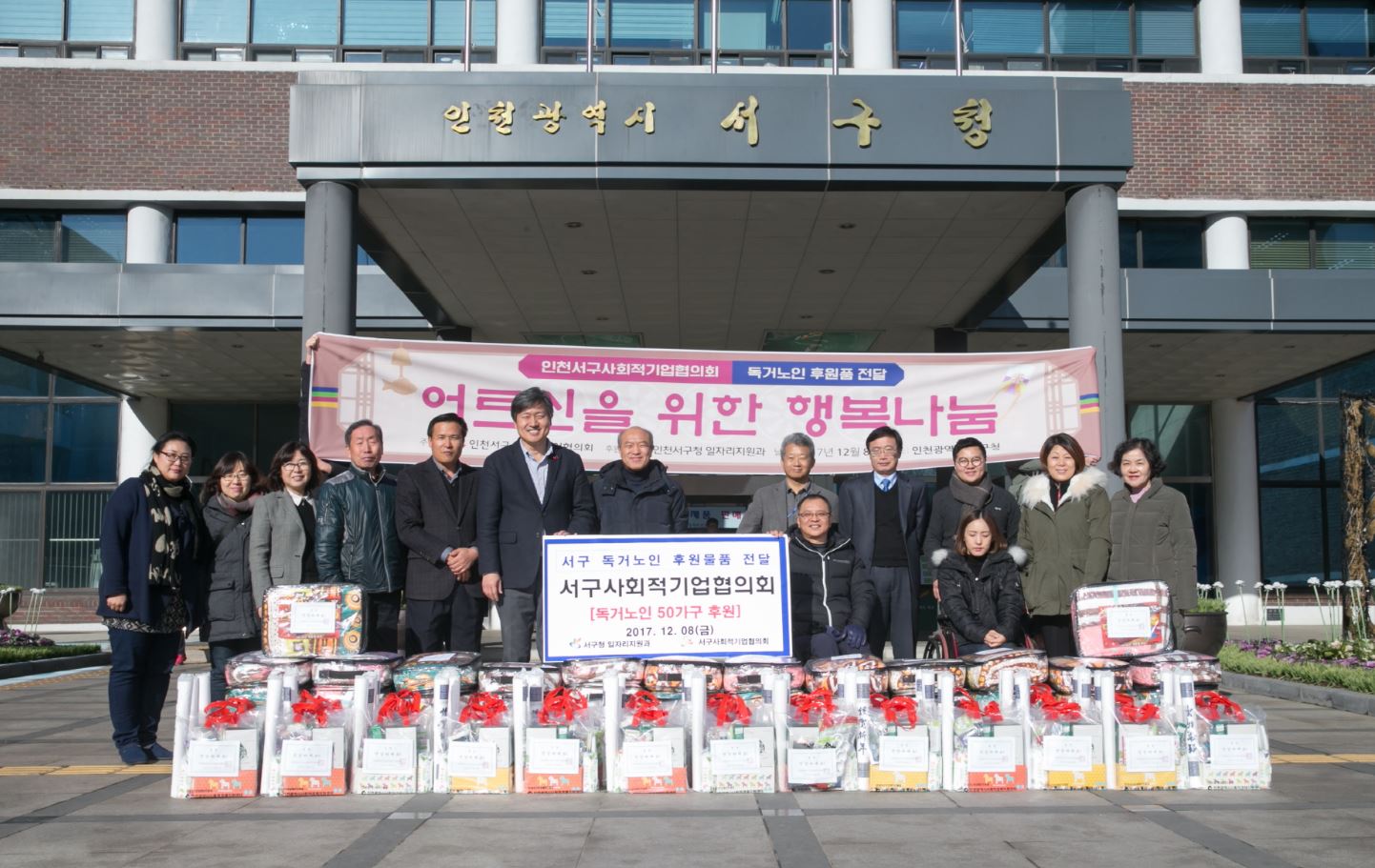 서구사회적기업협의회(회장 김재필)는 지난 12월 8일 관내 저소득 독거노인 가정을 지원하기 위해 후원품(이불, 건강즙, 생활필수품 등) 50개를 서구청에 전달했다.