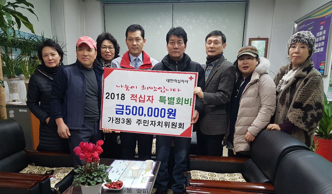이에 오영삼 동장은 바쁜 일정에도 적십자 회비 모금에 동참해주시는 가정3동 주민자치위원회에 감사드리며, 이웃들과 상생하고 화합하는 따뜻한 마을 조성을 위해 최선을 다하겠다고 감사의 뜻을 전했다.