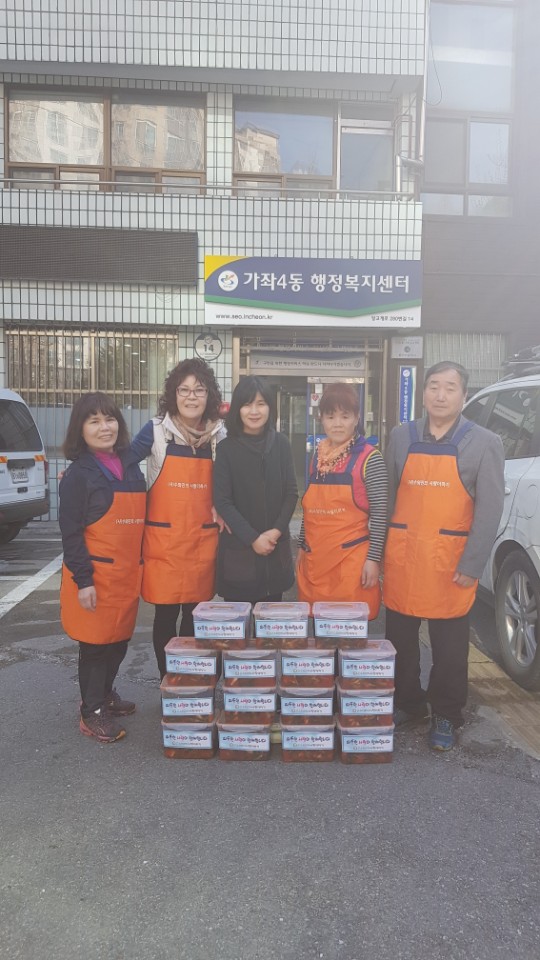 수와진의 사랑더하기 봉사회 서구지회(지회장 전병길)는 지난 16일 인천 서구(구청장 강범석) 가좌4동(동장 이재건)에 거주하는 저소득 가정 15세대에 제철김치를 지원했다.