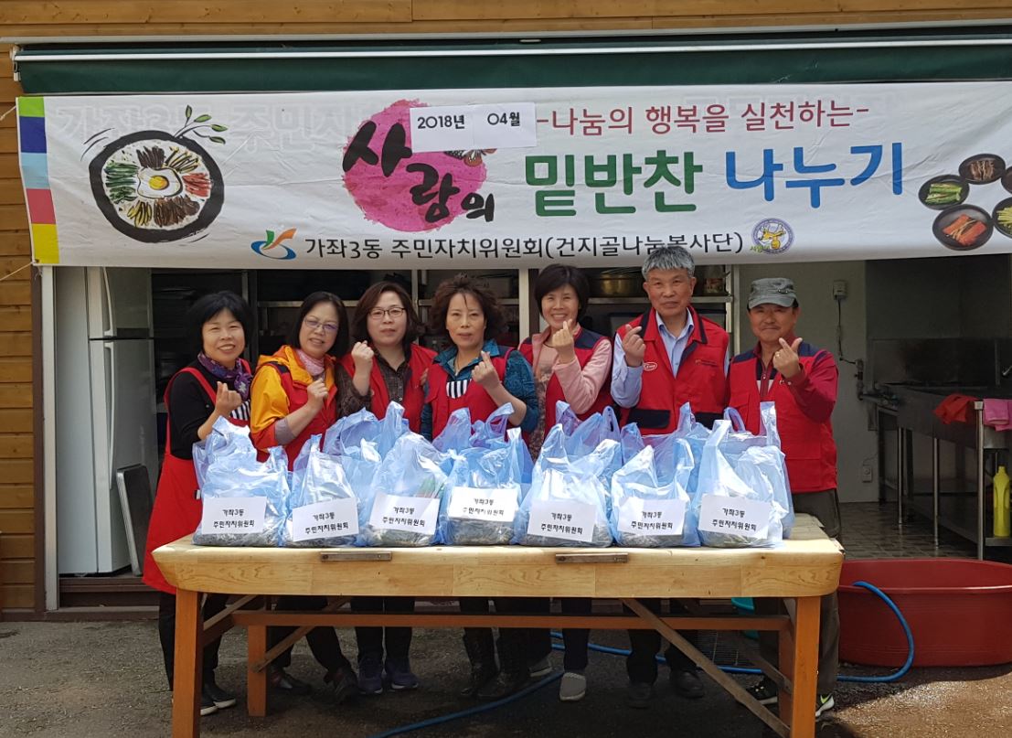 가좌3동 주민자치위원회는 2010년부터 밑반찬 봉사 활동을 시작해 매월 셋째 주 금요일을 밑반찬 봉사의 날로 정해 관내 독거노인 등 20세대에 김치와 계절 반찬 등을 만들어 집으로 배달한다.