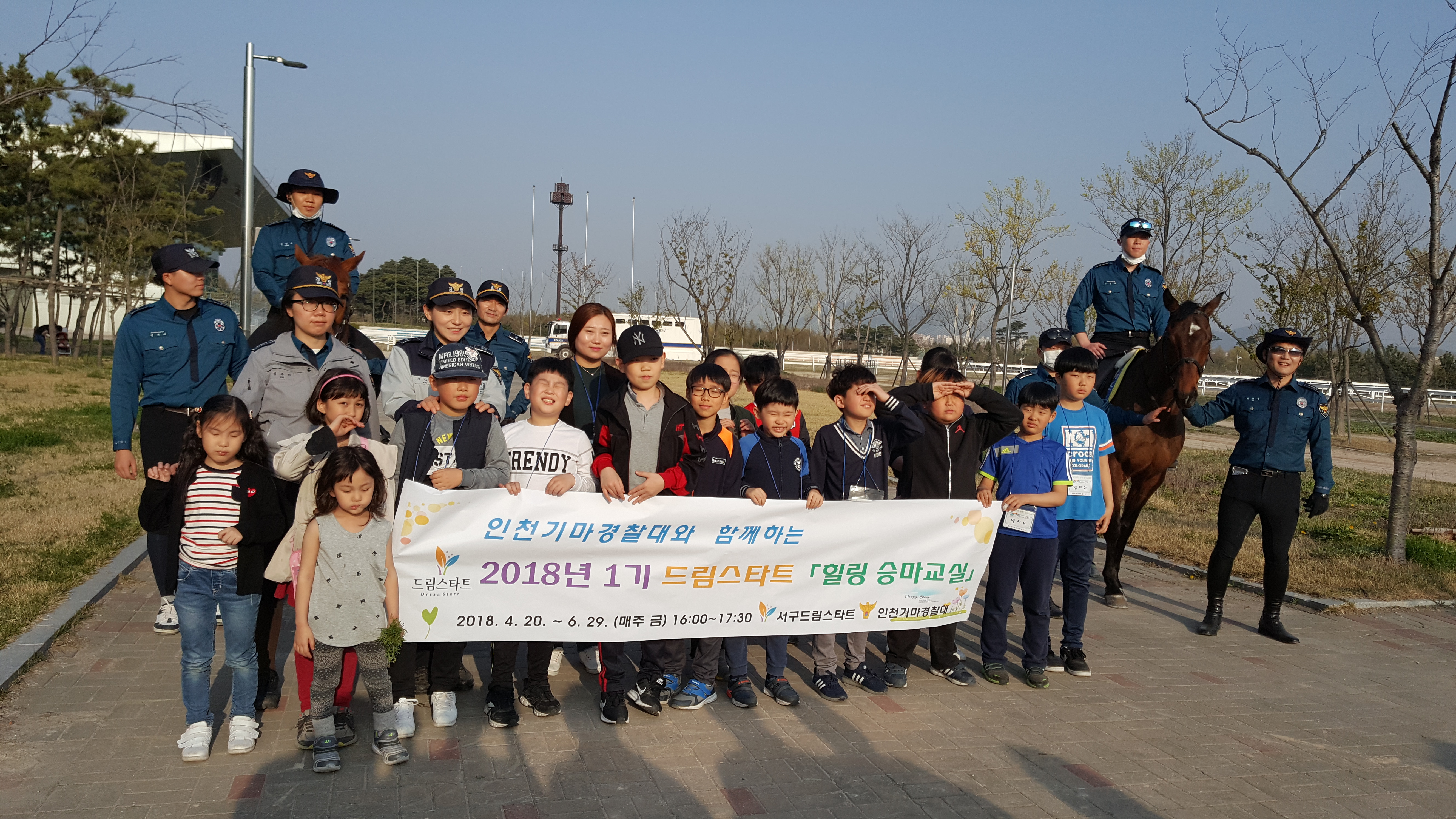 이번 프로그램은 공공복지 프로그램을 운영하는 인천기마경찰대와 연계해 드림파크 승마장에서 진행됐다.