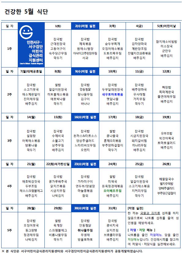 건강식단과 건강레시피의 자세한 자료를 원하는 구민은 서구 홈페이지(http://www.seo.incheon.kr)>분야별정보>식품위생>건강식단 및 건강레시피를 참고하면 된다.
