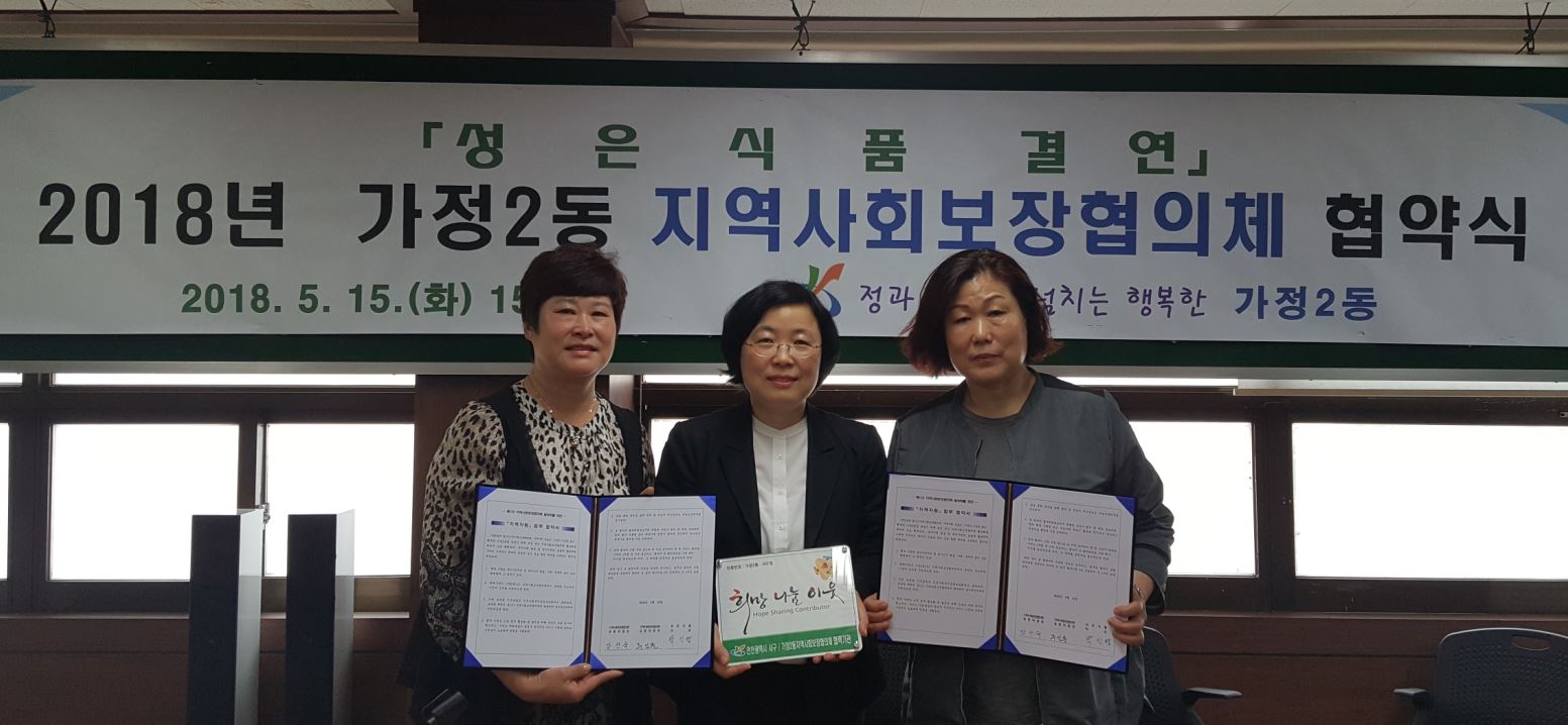 한편, 이날 협약을 계기로 주일분 위원장은 가정2동이 여러 가지로 어려운 여건의 지역이지만, 더욱 어려운 이웃의 지킴이로 거듭나 그야말로 정과 사랑이 넘치는 행복한 동네를 만드는 데 최선을 다하겠다고 말했다.
