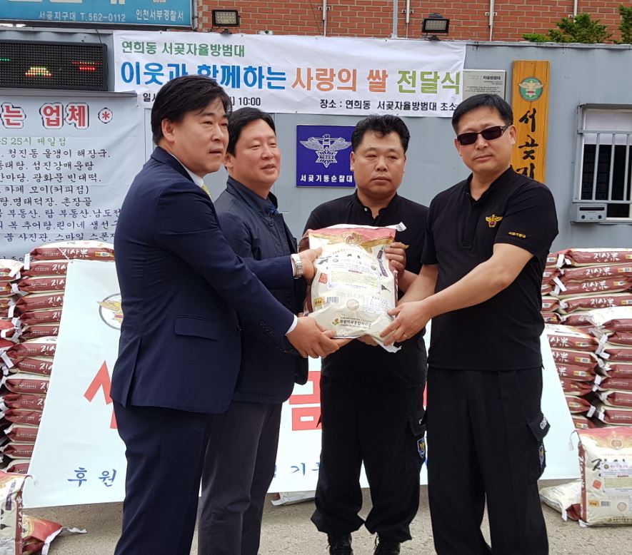 인천 서구 서곶자율방범대(대장 여종원)는 지난 27일 연희동 서곶자율방범대 초소에서 사랑의 쌀 200포를 지역 내 도움의 손길이 필요한 이웃에게 써 달라며 연희동 행정복지센터(동장 백용석)에 전달했다.