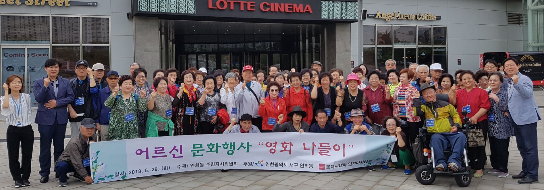 이번 행사는 연희동주민자치위원회와 롯데시네마 인천아시아드관이 월1회 최대 100명씩, 관내 대상자에게 무료로 영화 관람을 지원하는 업무협약을 체결해 진행하는 지역복지사업으로 추진됐다.
