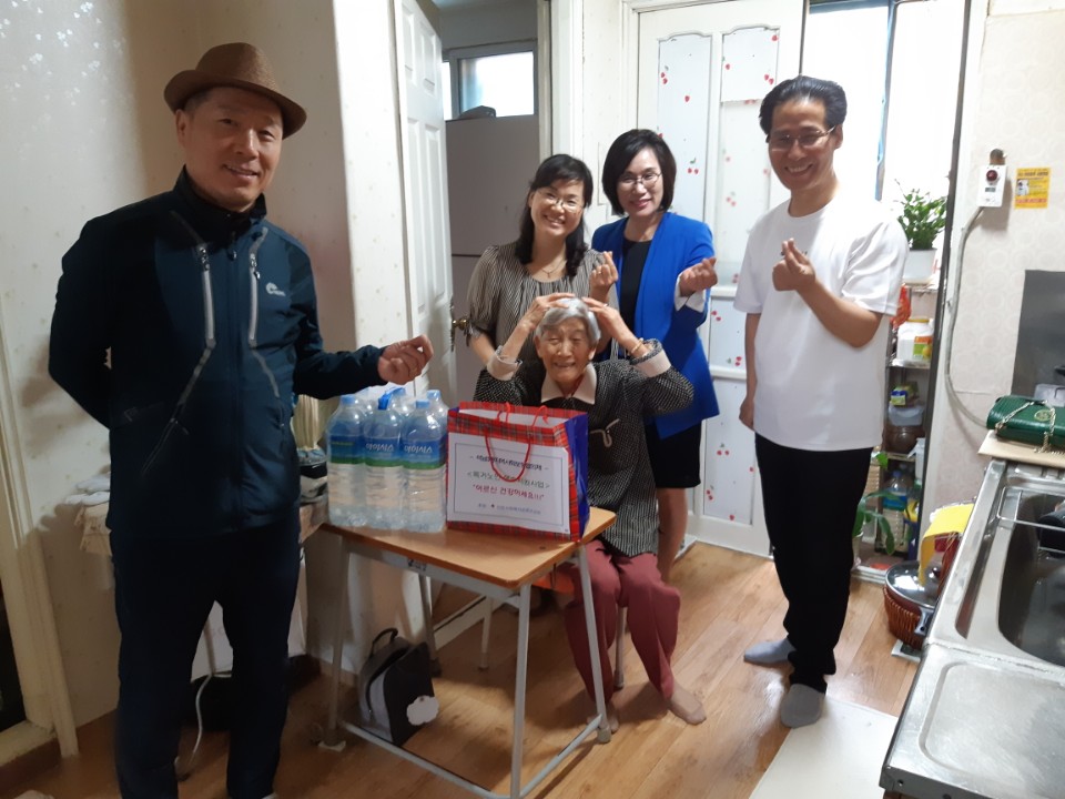 독거노인 생수 지원 사업은 지난해 5월에 시작해, 매월 지역사회협의체 위원들이 거동이 불편한 독거노인 6세대를 방문해 생수, 밑반찬과 생활용품 등을 직접 전달하고, 안부확인과 말벗 서비스를 제공해 어르신들의 일상생활 유지, 고독감과 외로움을 해소하는 데 도움을 주고 있다.