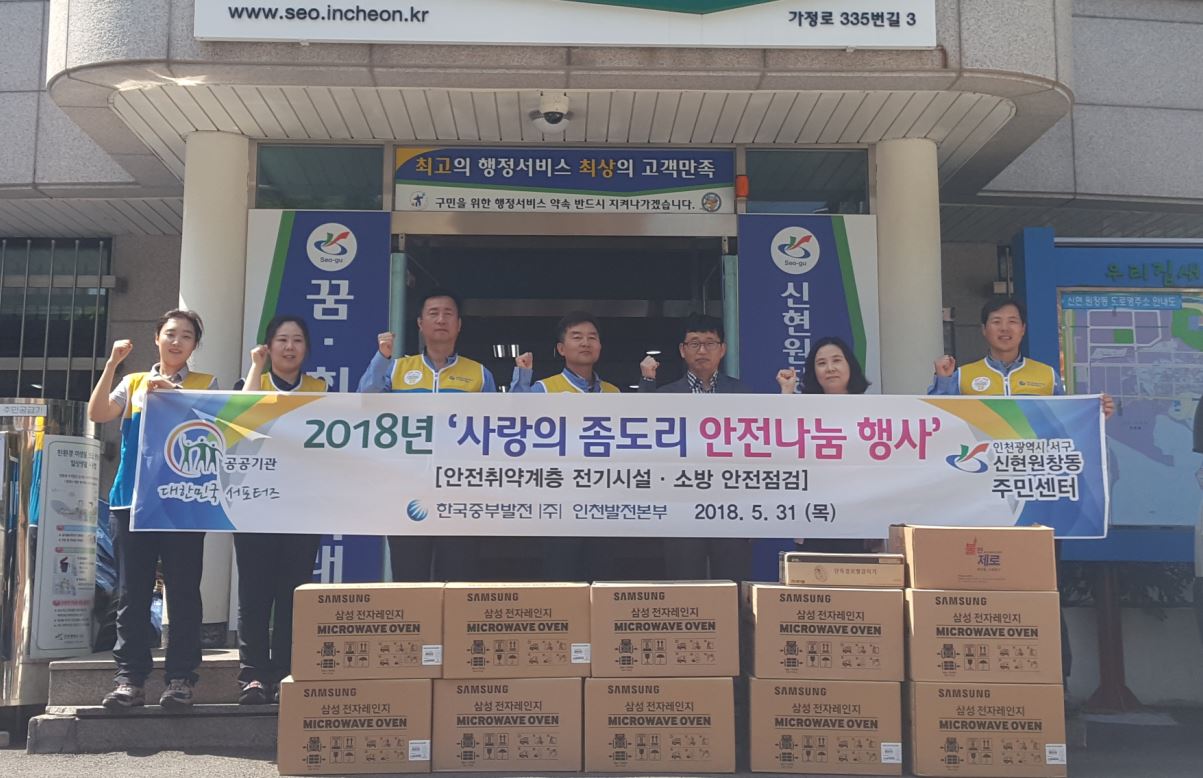인천 서구 신현원창동 지역사회보장협의체(공동위원장 문찬주, 박복녀)와 한국중부발전 인천발전본부(본부장 윤경현)는 지난 31일 관내 소외계층을 대상으로 '사랑의 좀도리 안전 나눔행사'를 실시했다.