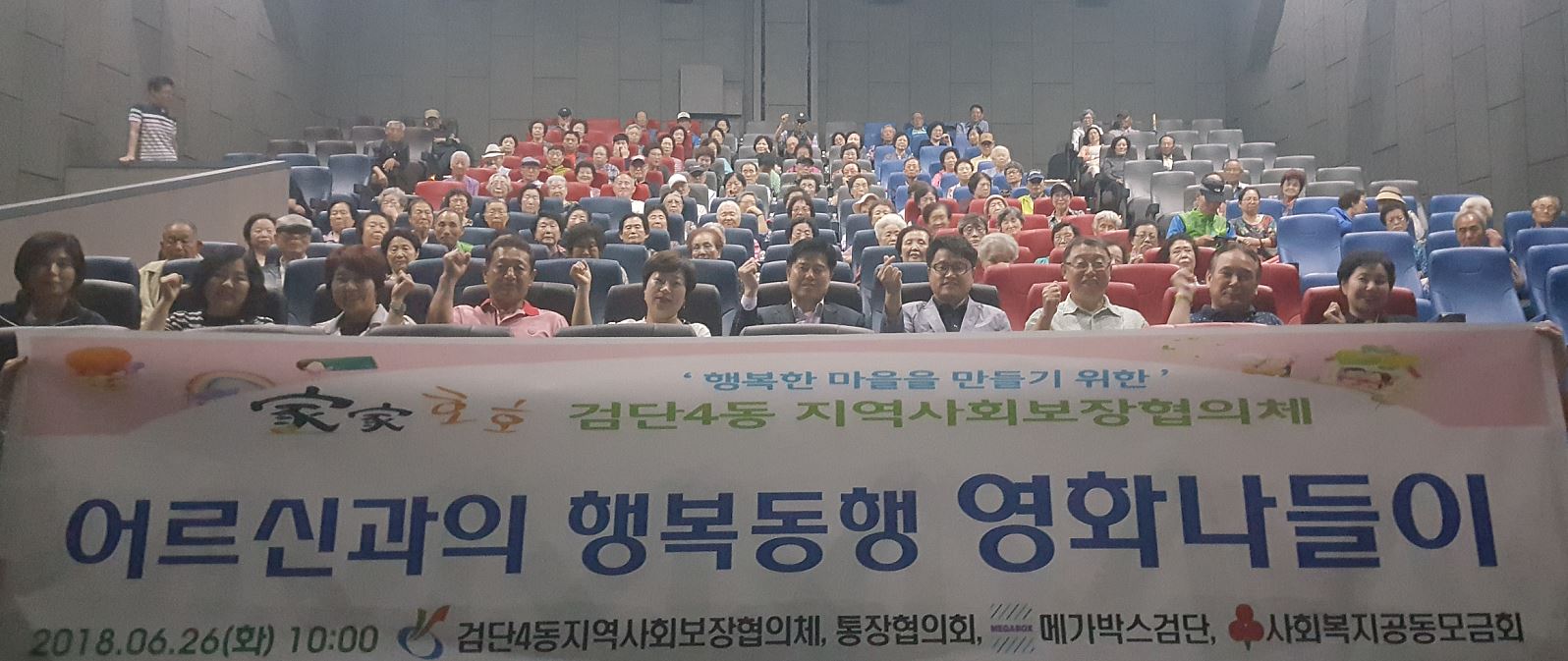 인천 서구 검단4동지역사회보장협의체는 지난 26일 문화혜택에서 소외된 관내 어르신 150분을 모시고 영화나들이를 했다.