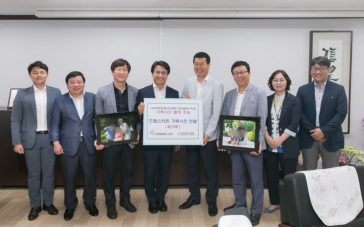 인천 서구(구청장 이재현) 드림스타트는 지난 5월 나들이 시, (사)한국프로사진협회 인천광역시지회 회원의 재능기부로 촬영한 가족사진을 참여한 가족(42가정)에게 액자로 제작, 11일 구청장실에서 전달했다.