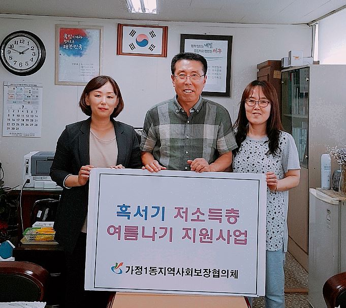 인천 서구(구청장 이재현) 가정1동 지역사회보장협의체(위원장 임은숙, 공동위원장 이훈희)는 지난 10일 ‘혹서기 저소득층 여름나기 지원사업’을 실시했다.