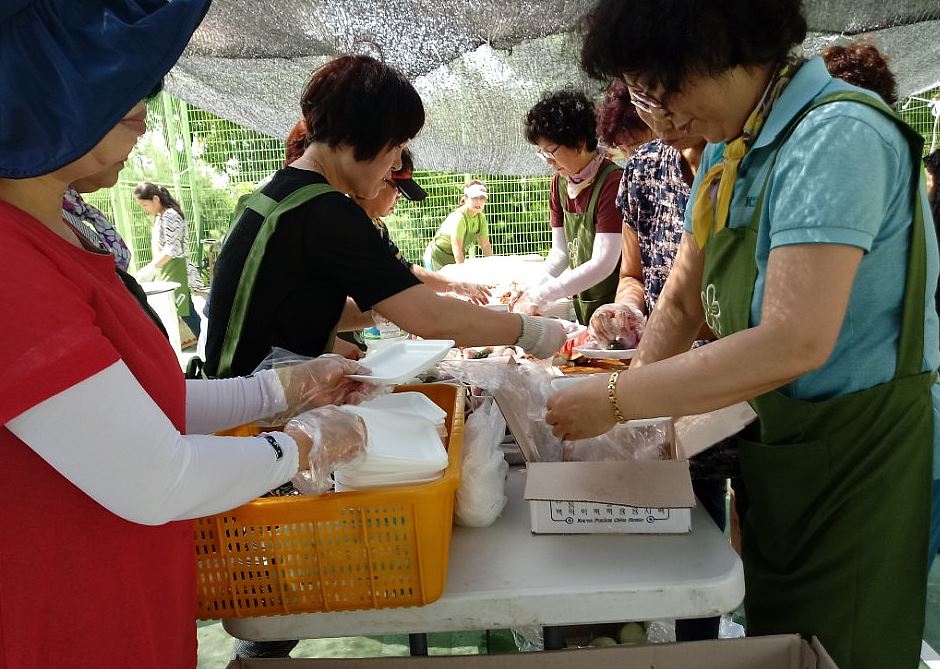 이 날 행사는 무더운 날씨에도 불구하고 SK인근지역주민협의회에서 정성껏 준비한 삼계탕, 떡, 수박 등을 대접함으로써 사랑을 나누는 뜻깊은 시간을 가졌다.