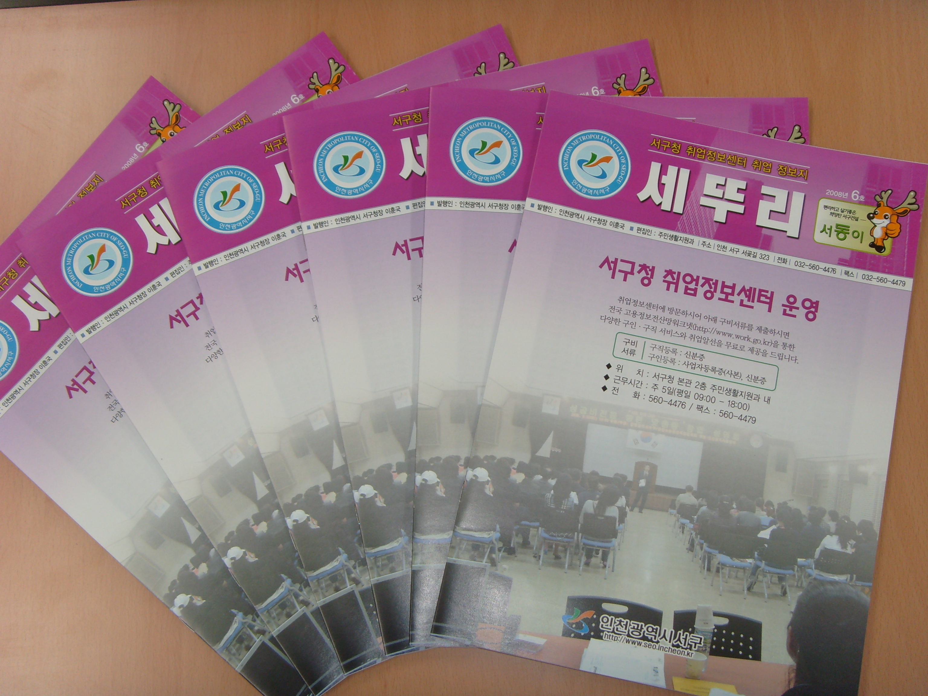 인천광역시 서구(청장 이훈국)는 서구 관내 실직자 및 구직자들의 취업의욕 증진과 취업정보를 제공하기 위한 일환으로 취업관련 정책, 일자리 정보, 직업훈련, 기타 정보 등으로 구성한 취업정보지 「세뚜리」 제6호를 펴냈다.