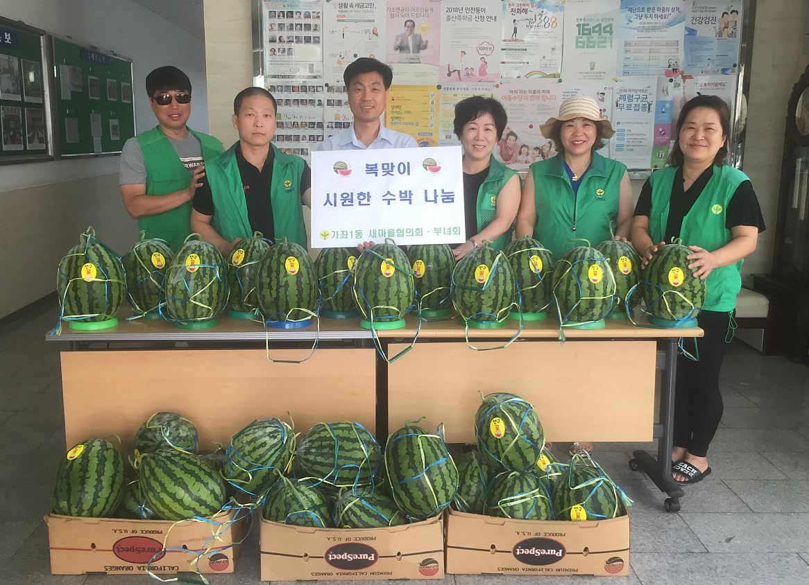인천 서구(구청장 이재현) 가좌1동 새마을협의회·부녀회(회장 김성재, 손요안나)는 최근 관내 경로당과 저소득 가정에 수박을 직접 전달했다.