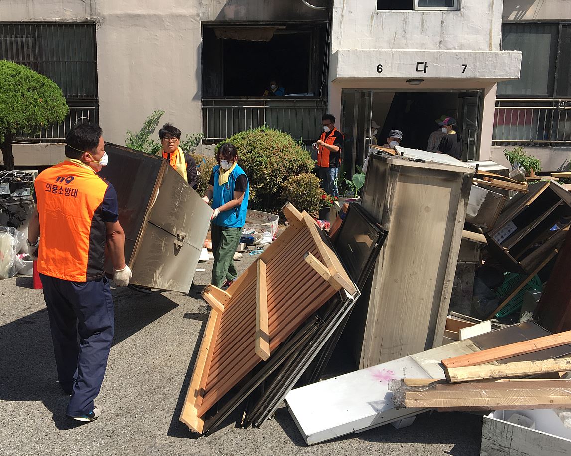 이번 대청소는 영상 37도 이상 폭염 속에서 구 자원순환과 협조 아래 구의원(정영신, 김미연 의원), 동 직원, 서부소방서, 의용소방대, 자원봉사자 등 50여명이 참여해, 구슬땀을 흘리며 약 3시간에 걸쳐 3톤가량의 화재 잔재물을 처리해 피해주민이 정상적인 생활을 할 수 있도록 도움을 줬다.