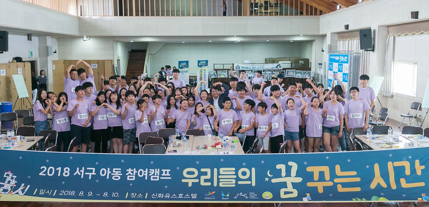 인천 서구(구청장 이재현)는 지난 9일부터 10일까지 이틀 동안, 서구 아동자치기구 소속아동 100여명이 참여하는 2018 서구 아동 참여 캠프 ‘우리들의 꿈꾸는 시간’을 개최해, 아동친화도시 서구의 비전을 꿈꾸는 시간을 가졌다.