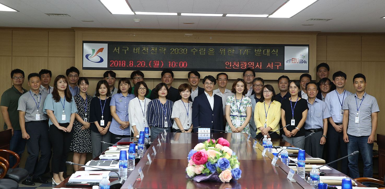 ‘서구 비전·전략 2030’은 민선 7기 출범을 맞아 주민 욕구 증대에 부응하고, 구정 운영의 방향성을 제시할 수 있는 목표 정립과 전략 중심 조직운영에 대한 필요성에서 시작됐으며, 구는 첫 단추로 ‘서구 비전·전략 2030’ 수립을 위한 TF팀을 구성하고 20일 발대식을 가졌다.
