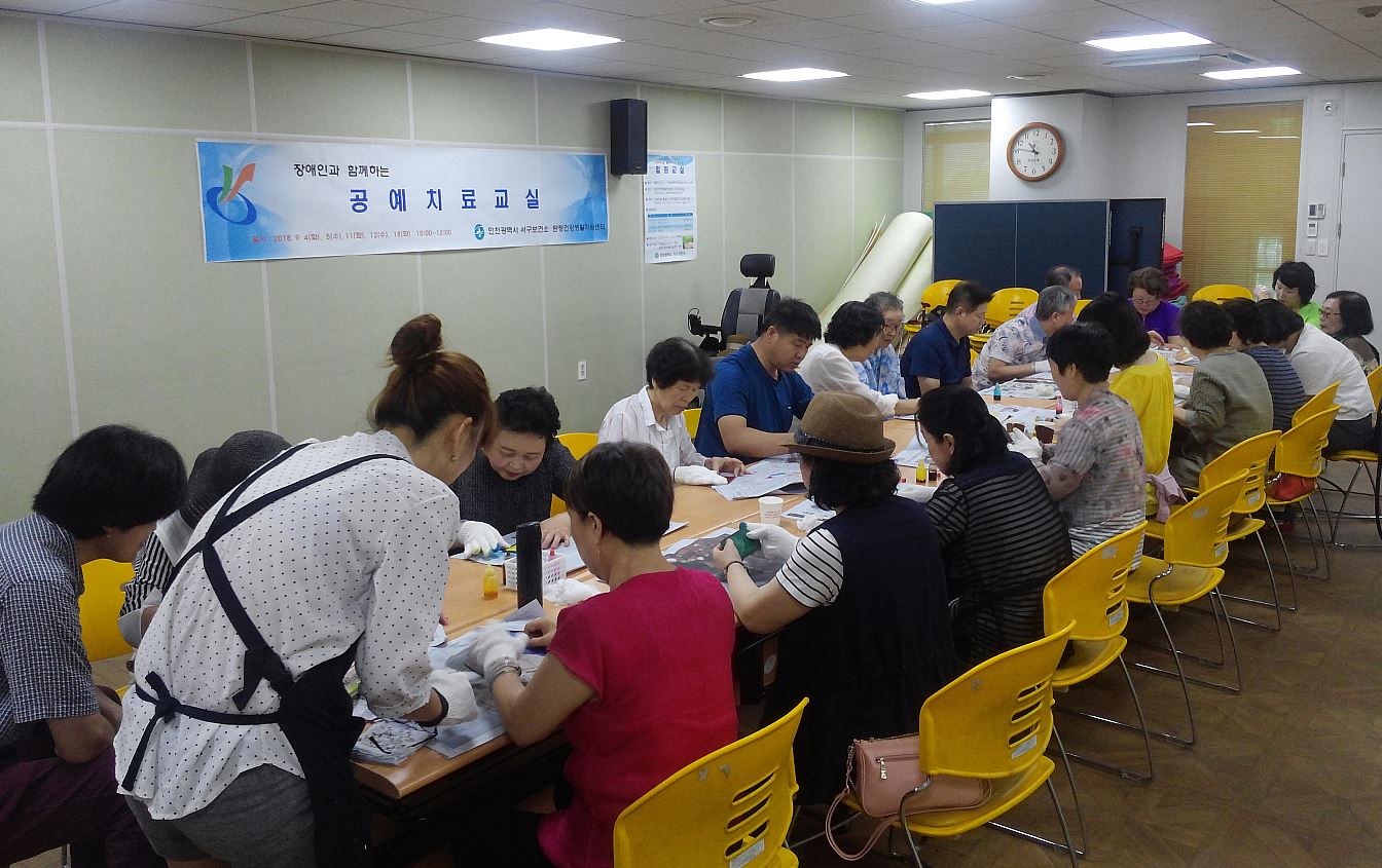 인천 서구(구청장 이재현) 보건소(소장 박호추)는 지난 4일부터 18일까지 총 5회에 걸쳐 뇌병변, 지체 장애인 18명을 대상으로 ‘장애인과 함께하는 공예치료 교실’을 운영했다.