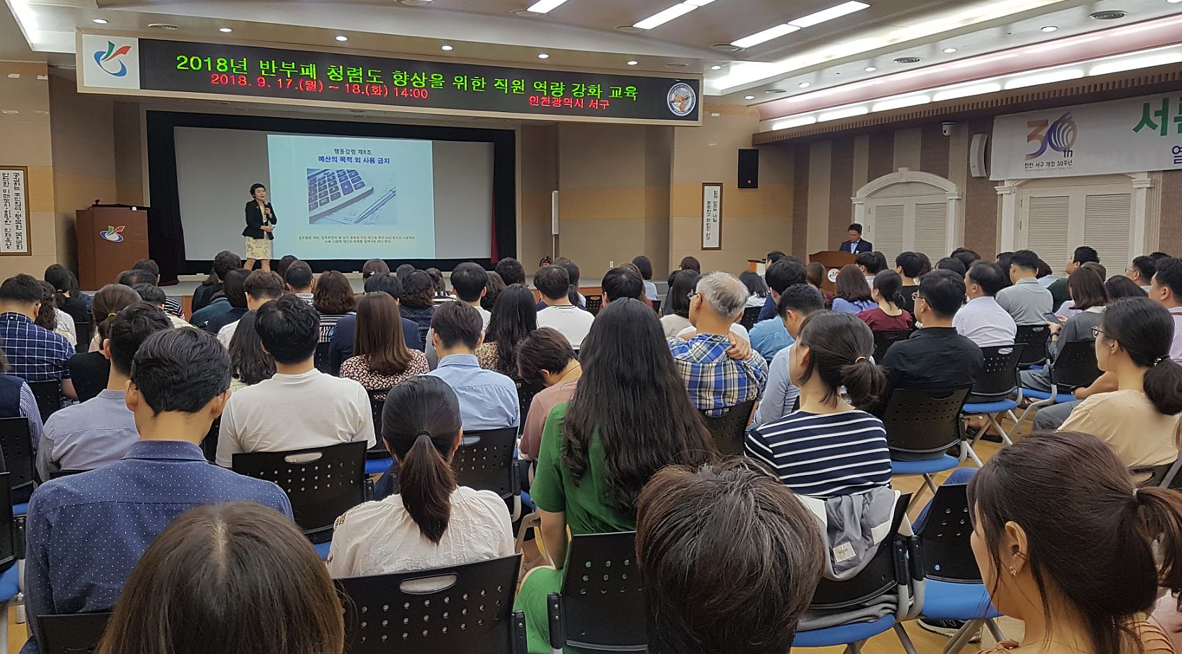 인천 서구(구청장 이재현)는 지난 17일과 18일 구청 대회의실에서 전 직원과 유관기관 직원들을 대상으로 청렴도 향상과 CLEAN 서구 구현을 위한 ‘2018년 반부패·청렴 교육’을 실시했다.