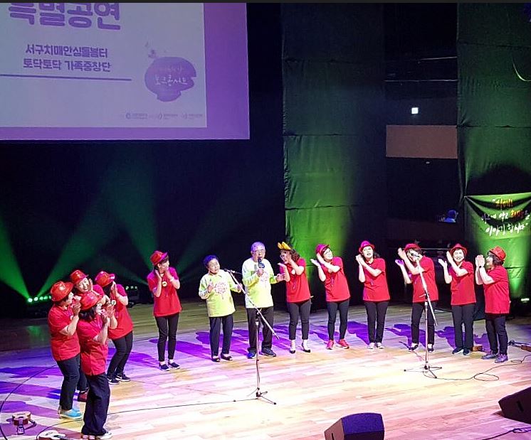 인천 서구(구청장 이재현) 치매안심돌봄터의 ‘토닥토닥 치매 가족 중창단’은 인천광역시 제11회 치매극복의 날 기념행사에 초청돼 “에델바이스, 드라마”를 부르고 우크렐레 공연을 해 관중에게 많은 관심을 받았다.