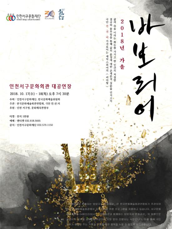 연극 바보리어17~ 18일 오후 730분 서구문화회관 대공연장에서 개최된다. 셰익스피어 4대 비극, ‘리어왕의 한국적 재현을 통해 신과 같은 절대 권력을 가진 리어왕의 광기와 고독을 다룬다.