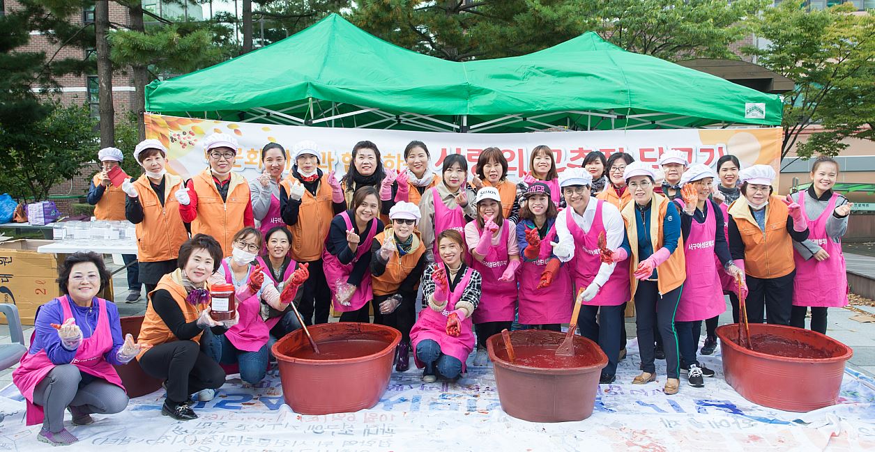 이번 행사는 2018년 서구양성평등기금 지원 사업으로, 서구 11개 여성단체 회원과 다문화가족 여성 등 50여 명이 모인가운데 진행됐으며, 함께 만든 사랑의 고추장은 관내 다문화․새터민 가정, 한부모․저소득 취약계층 등 230여 세대에 전달될 예정이다.