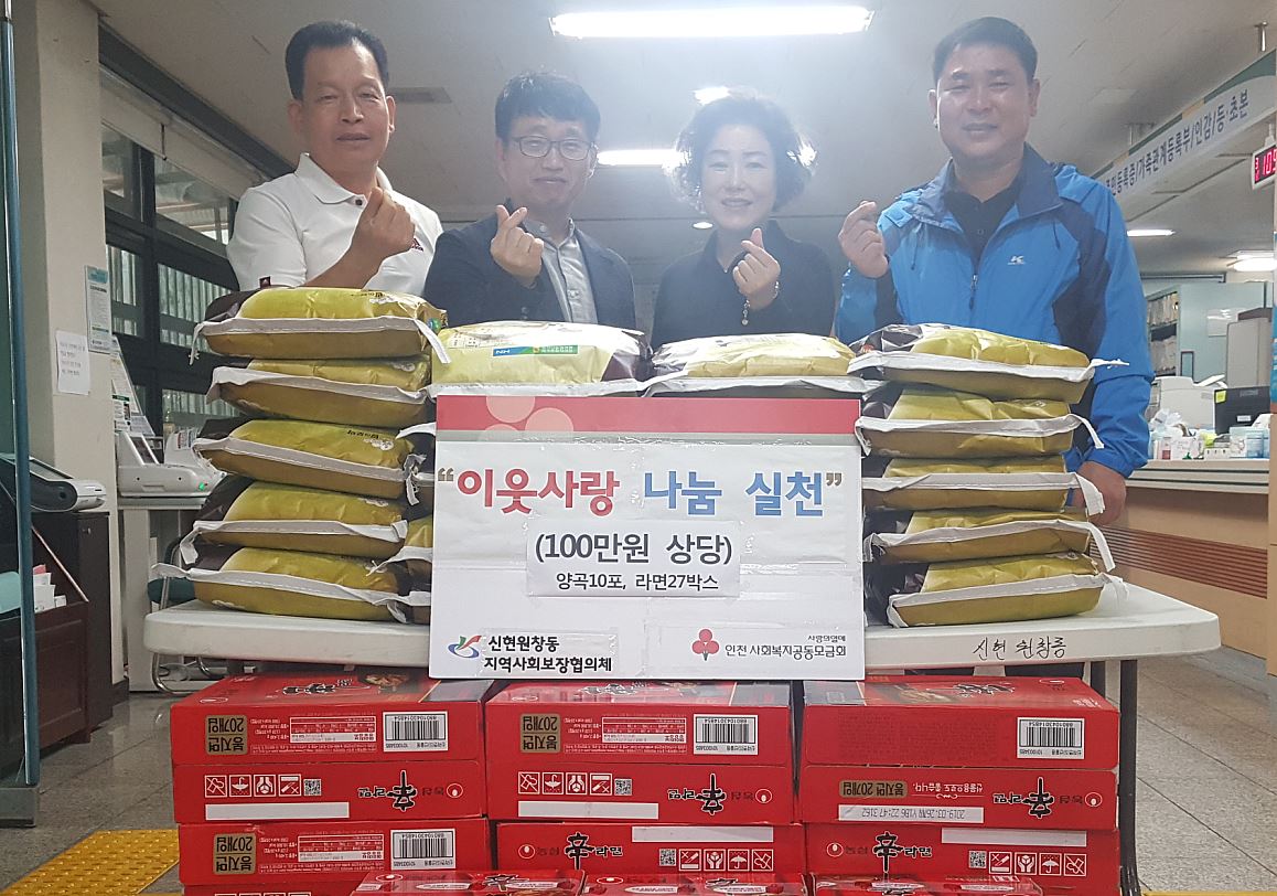 인천 서구(구청장 이재현) 신현원창동 지역사회보장협의체(동장 문찬주, 공동위원장 박복녀)는 복지사각지대 위기가정을 대상으로, 따뜻한 위로물품을 긴급 지원하기 위해, 최근 100만원상당의 양곡과 라면을 구입했다.