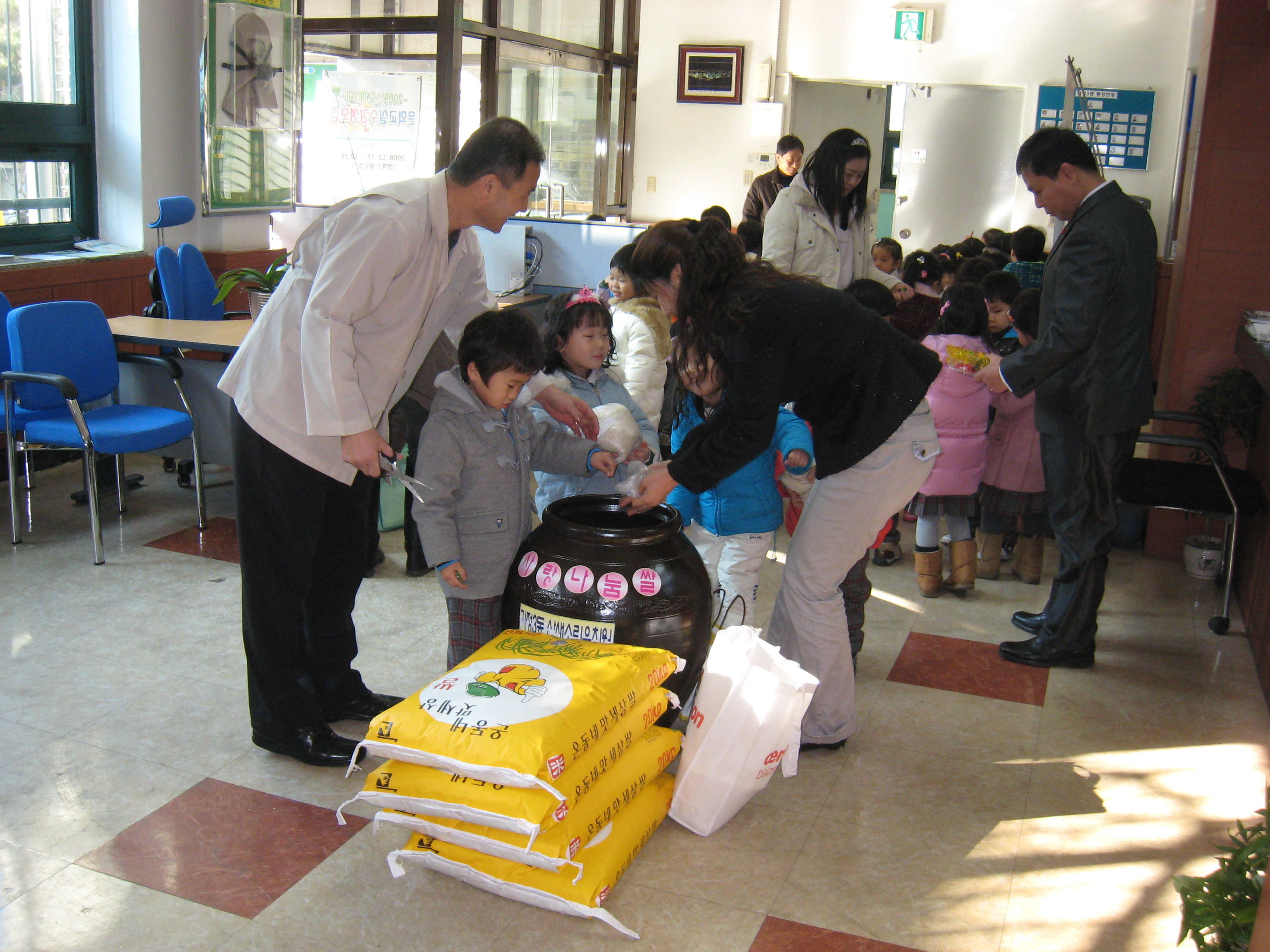 산새소리 유치원 아이들의 작은 고사리 손으로 가져온 쌀을 쌀독에 채워 모은 쌀 80㎏을 포함해 함께 모아진 총 240㎏의 쌀은 연말 연시 주민센터 입구에 쌀독을 놓아 주민들이 언제든지 가져 갈 수 있도록 할 계획이다.